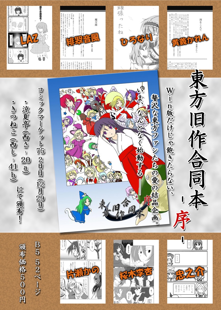 東方旧作合同のチラシが出来ていたのでこちらでも貼っておきますねー。