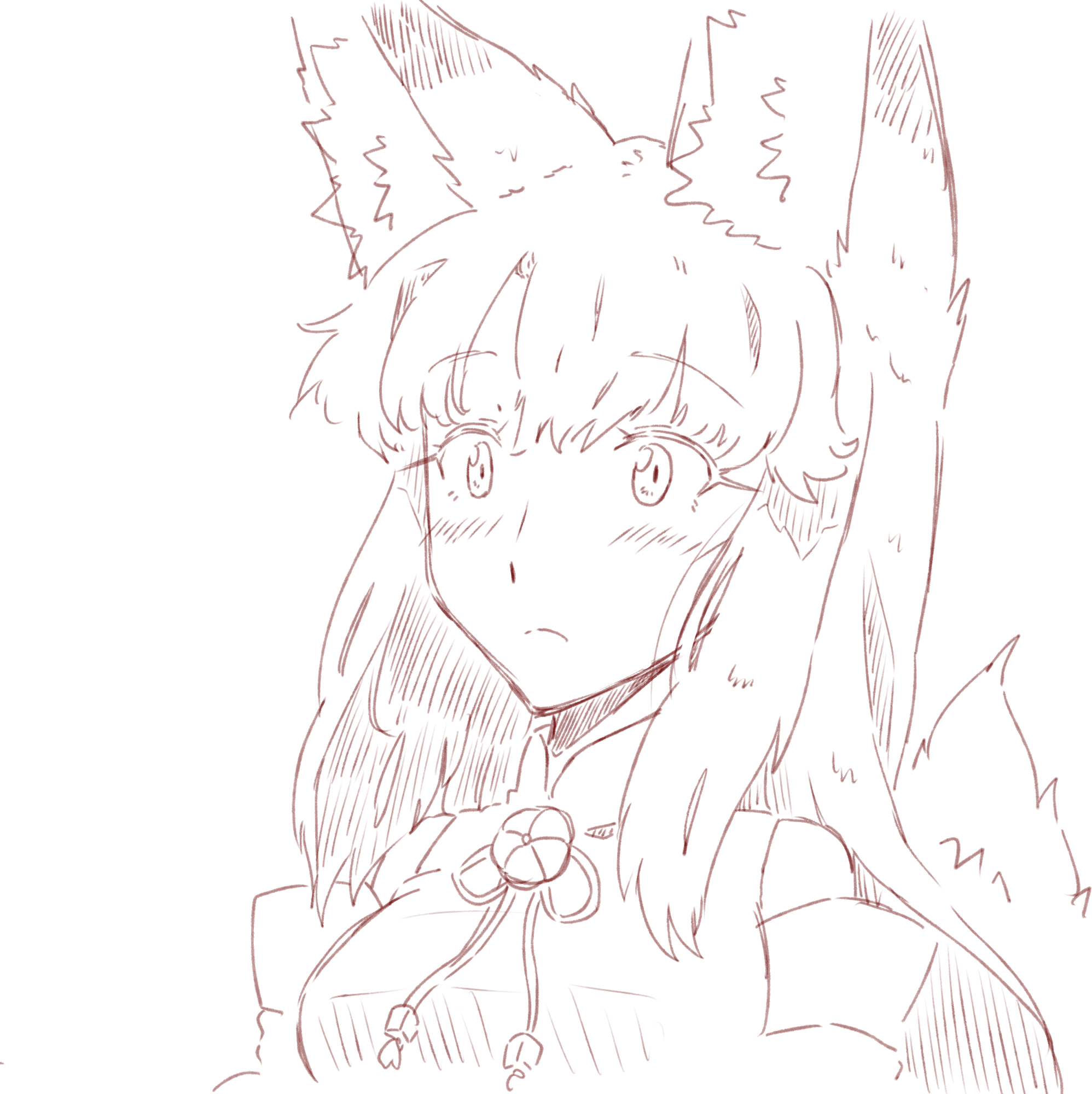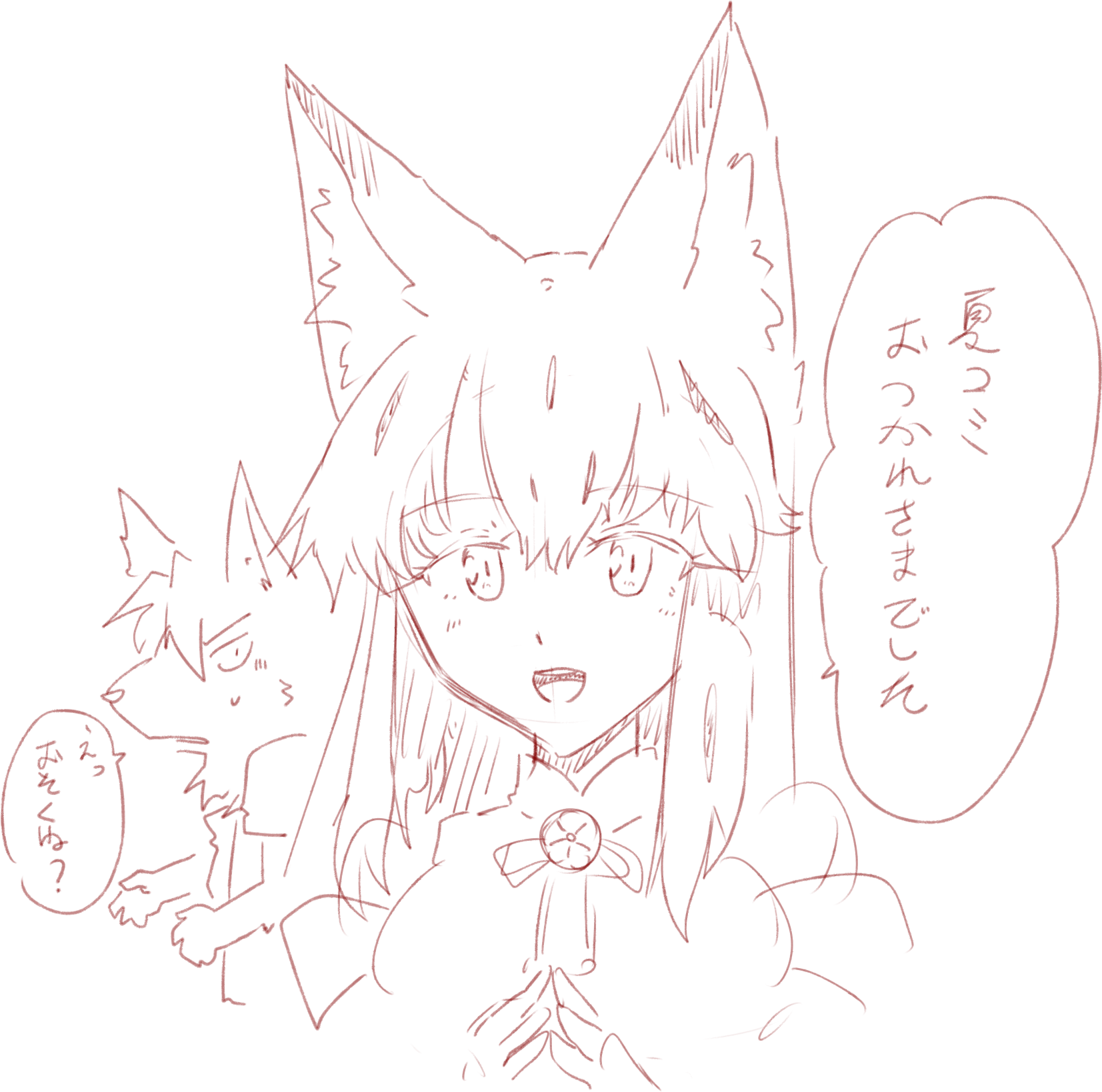 九重って狐々音とかと比べて意識的に可愛くなるように描いたつもりなんですけど、可愛くなっていますかねえ。狐々や狐々音ってあんまり口開けてニコニコ笑わないんですよね。八重とかも狐々音と比べて線を柔らかくして可愛く描いているつもりのキャラなんですけど。